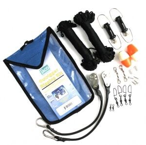 Taco Marine Outrigger donatım kiti. 670 cm boya kadar bir çift outrigger için gerekli tüm ekipmanı içerir. Siyah dakron ipi 30 metre boyundadır.