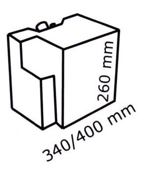 Taban 340x400 mm, yükseklik 260 mm olarak veya taban 400x260 mm olarak monte edilebilir.