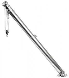 Eloksallı alüminyumdan yapılmıştır. Toplanmış pozisyondayken, yürüme yüzeyinin altına gizlenir. Hem pasarella hem de dingi için çift makara ve iskota bağı ile donatılmıştır. İki çalışma pozisyonu; tekne ile aynı hizada (dingi tutma) veya iç kısımda 20° eğimli (pasarella tutma). Teleskopik kısım çeşitli konumlarda ayarlanabilir ve farklı dingi türleri için mükemmel ayar sağlar. Çifti için yük kapasitesi 180 kg.