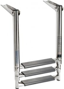 Oval borudan ve daha büyük basamaklı Teleskopik merdiven (Genişlik 45 mm). Oval borular merdiveni daha değerli yapar. Büyük basamaklarla tırmanırken daha iyi kavrama sağlanır. AISI 316 paslanmaz çelik.Basamak 3