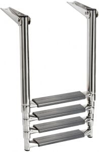 Oval borudan ve daha büyük basamaklı Teleskopik merdiven (Genişlik 45 mm). Oval borular merdiveni daha değerli yapar. Büyük basamaklarla tırmanırken daha iyi kavrama sağlanır. AISI 316 paslanmaz çelik.Basamak 4
