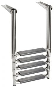 Oval borudan ve daha büyük basamaklı Teleskopik merdiven (Genişlik 45 mm). Oval borular merdiveni daha değerli yapar. Büyük basamaklarla tırmanırken daha iyi kavrama sağlanır. AISI 316 paslanmaz çelik.Basamak 5