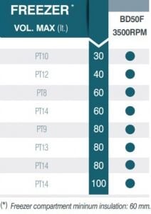 - Evaporatör modeli PT3. Önerilen kapasite (litre): 80. BD35 - 2500 RPM