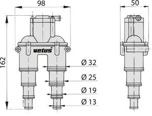 Hortumlu olan bu modelde tekne gövdesinin dışına hortum bağlantısı vardır. Motor çalıştığı sürece bu hortumdan bir miktar soğutma suyu akar. 13 mm (1/2"), 19 mm (3/4"), 25 mm (1") ve 32 mm(1¼") iç çaplı hortumlara uygundur. Güverte çıkış firarı, hortum ve hortum kelepçeleri ile birlikte sunulmaktadır.