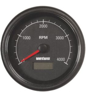 Vetus devir göstergesi, 0-4000 rpm. W bağlantılı alternatöre sahip dizel motorlara uygundur. Zaman saati mevcuttur. Ø100 mm olup, siyah ve kromaj iki adet çerçeve standarttır. İhtiyaca göre çerçevelerden herhangi birini kullanabilirsiniz. 12/24V.TİP SİYAH KADRANLI