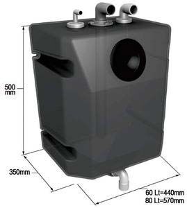 Vetus dik montaj pis su tankı. Koku geçirmez ve dışarıdan seviye görülebilir. Güverte tahliyesine bağlanmak üzere Ø 38mm emiş borusu, Ø 38mm boşaltma dirseği, Ø16mm havalandırma dirseği ve bakım kapağı standarttır. Bu tanklar su kesiminin üzerinde ve güvertenin hemen altına monte edilmeye uygun olup, izin verildiği takdirde pompa gerekmeksizin, takılacak tahliye vanasının açılmasıyla denize akış gerçekleşir. Pis su tesisatınıza uygun çaptaki giriş dirseği ayrıca sipariş edilmelidir.Hacim 60 lt