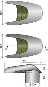 Vetus havalandırma, tip Typhoon. AISI316 paslanmaz çelik ve sentetik materyalden imal edilmiştir. Ø75 ve Ø100 mm. hortum monte edilmek üzere iki modeli mevcuttur. Ø75 mm olan modelde serbest hava akış alanı 30 cm2, Ø100mm olanda ise 41 cm2’dir. Dikey veya yatay monte edilebilir.hortum Ø (mm) 100