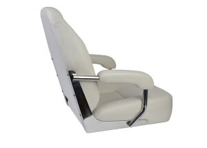 Üstün kaliteli, kolçaklı koltuk. Paslanmaz çelik yapı.