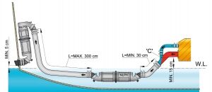 Soğutma suyu hattının püskürtme noktasının “C” su kesimi hattından yüksekliği 15 cm veya daha fazla yukarıda olmalıdır.Ø D 45 mm