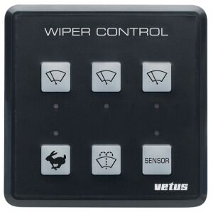 Vetus model RWPANEL2 silecek kontrol paneli. Maksimum 3 adet cam silecek motorunu senkronize olarak kumanda eder. Silecekler düşük veya yüksek hız seviyesinde ve 5 değişik duraklama süresinde ayarlanabilirler. Opsiyonel olarak sunulan yağmur sensörünün eklenmesiyle otomatik olarak kullanılabilir.