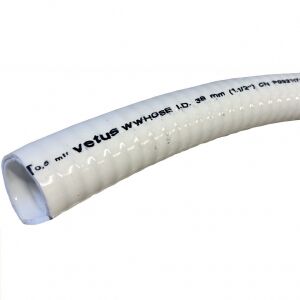 Vetus standart pis su hortumu. Çelik spiral takviyeli beyaz PVC'den mamuldür. -5/+65 C sıcaklığa mukavimdir.İç Ø 19 mm