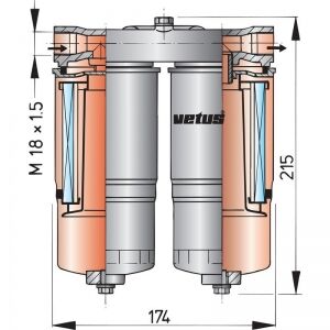 Vetus WS720 su ayırıcı yakıt filtresi.