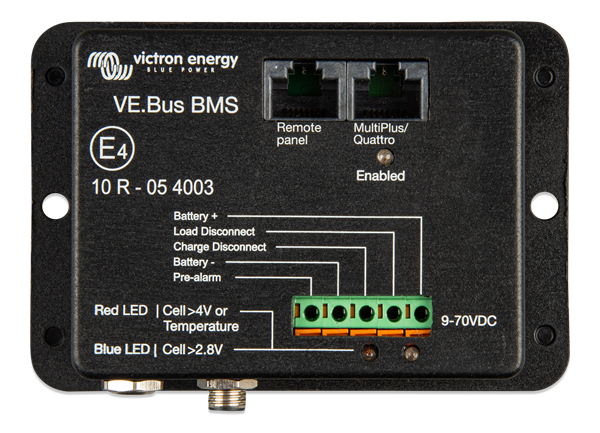 Her bir LiFePO4 akü hücresi, yüksek gerilime, düşük gerilime ve yüksek sıcaklığa karşı korunmalıdır. Victron LifePO4 akülerinde entegre Dengeleme, Sıcaklık ve Voltaj kontrolü (kısaltma: BTV) bulunur ve iki adet M8 dairesel konnektör kablo setiyle VE.Bus BMS'ye bağlanır.