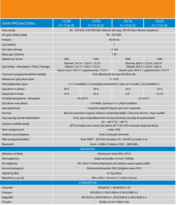 Victron Energy Phoenix Smart IP43 Akü Şarj Cihazı 24V 25 Amper (3) PSC242553085