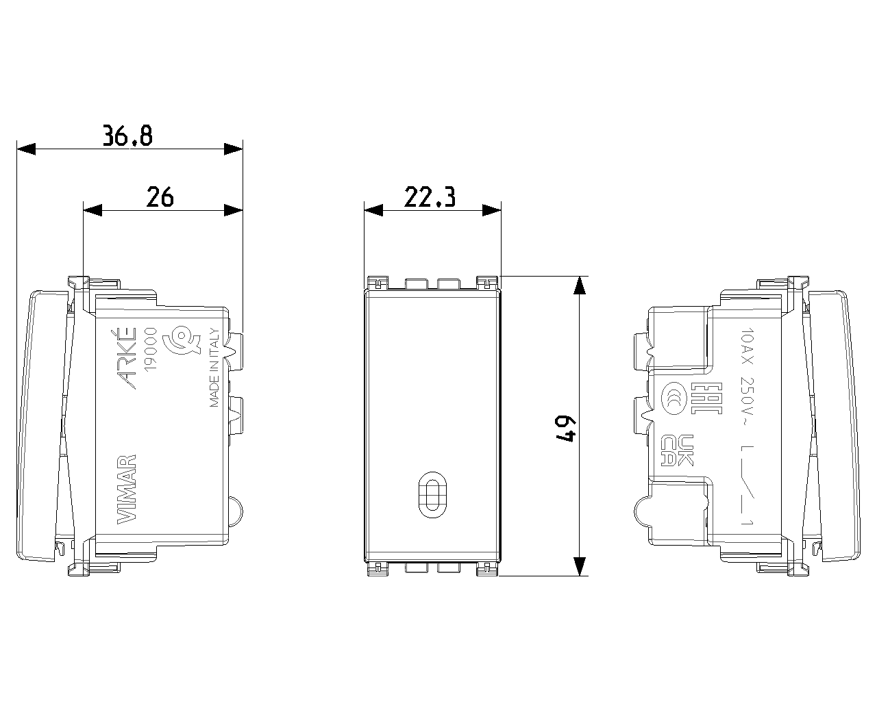 Vimar Arke 19000.M 1P 10AX 1 Yollu Anahtar Metal