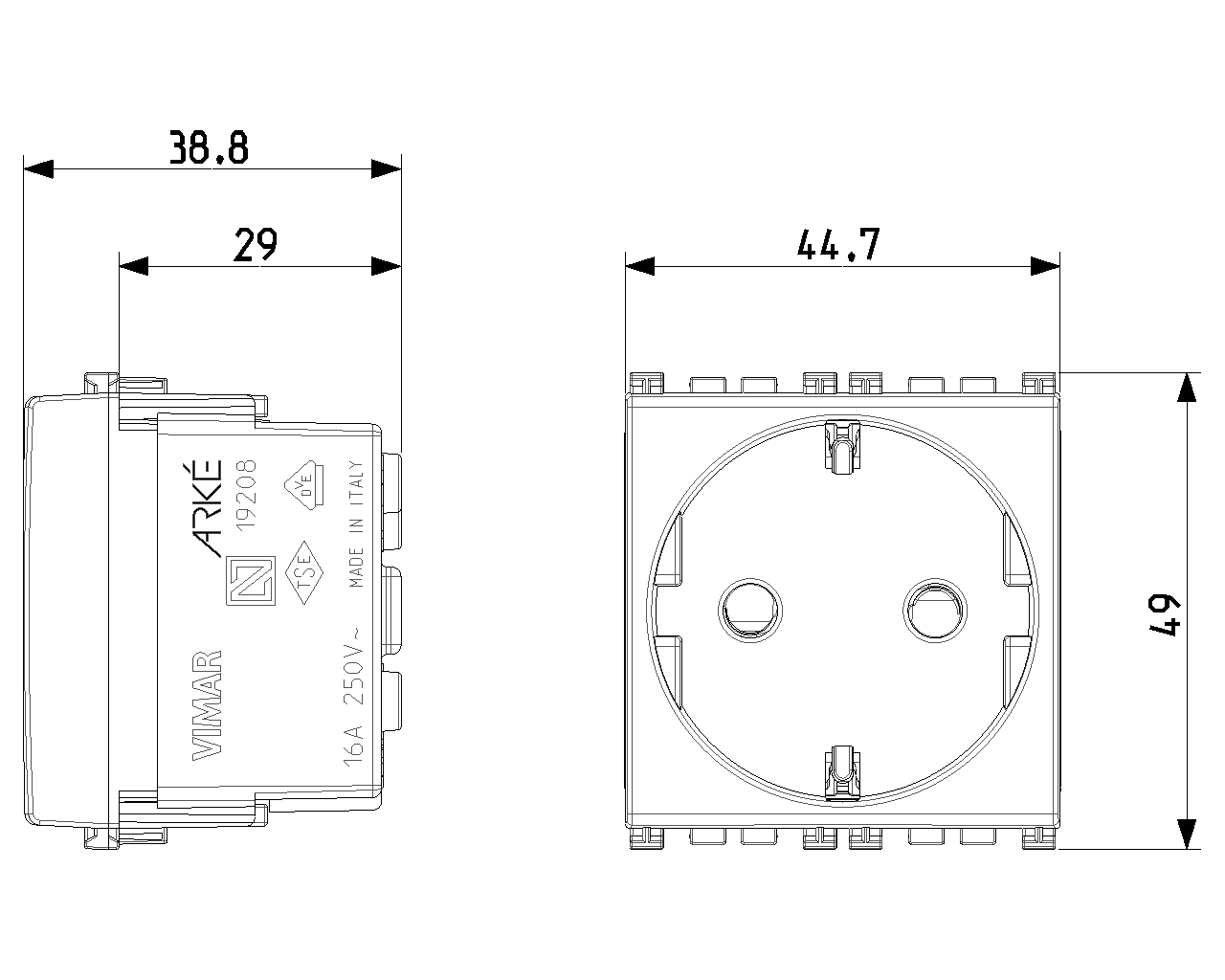 Vimar Arke 19208 2P+E 16A Alman Standardı Sıcury Topraklı Priz Füme