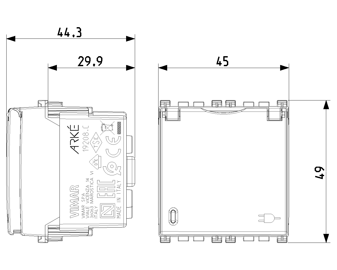 Vimar Arke 19208.C Kapaklı Topraklı Priz