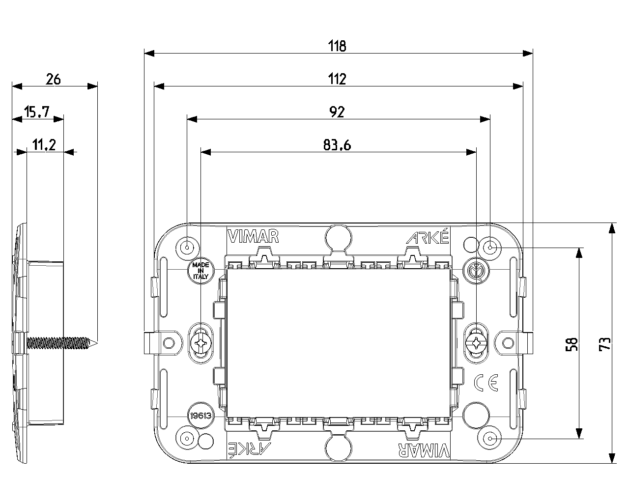 Vimar Arke 19613 3M Taşıyıcı ve Vidaları
