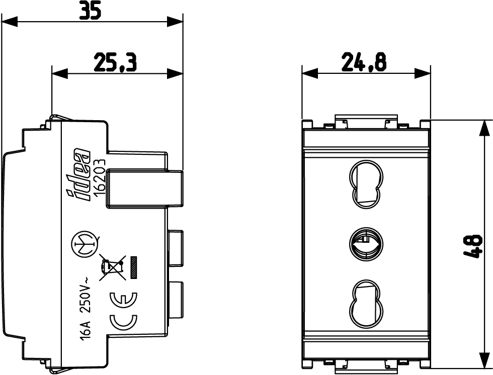 Vimar İdea 16203 2P+E 16 A 250 V~ SICURY Bpresa priz, İtalyan standardı P17/11, gri