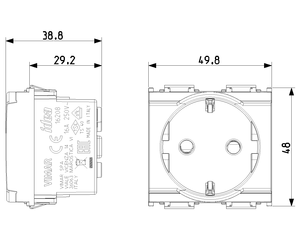 Vimar İdea 16208 Modül 10+16 A Topraklama Priz