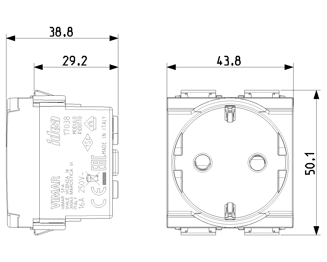 Vimar İdea 17038 Tekli Kasa İçin Topraklı Priz