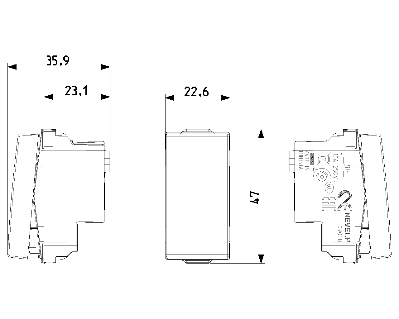 Cihaz genişliği 22,60 mm