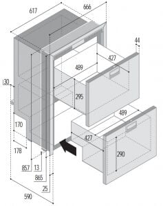 Vitrifrigo Buzdolabı. DW180 OCX2 RFX. Çekmeceli tip. Paslanmaz çelik kapak ve çerçeveli.