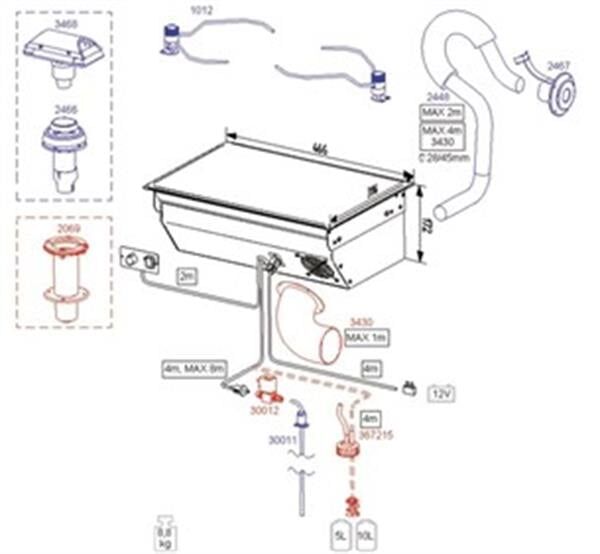 Wallas 30011, 88 DU modeli için tank bağlantı borusu. Wallas 30011, 88 DU modeli için tank bağlantı borusu