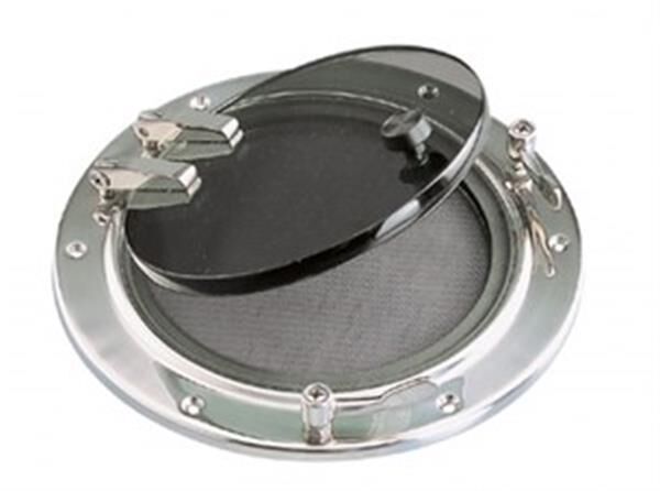 Yuvarlak ekonomik lumboz. Gri akrilik cam, çerçeve ve menteşeler 316 paslanmaz çeliktir. Uygulanabilir yüzey